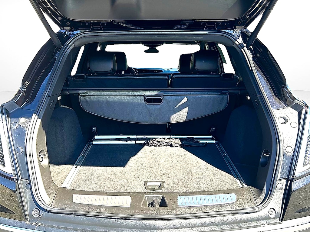 - Opens or closes when the system senses the key fob and the driver extends their foot under the left-hand side of the rear bumper over an image of the Cadillac Crest projected under the vehicle