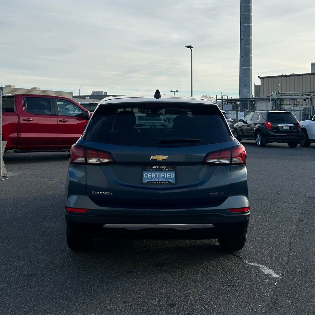 2024 Chevrolet Equinox LT AWD 6-Speed Automatic Electronic with Overdrive 1.5L DOHC Lakeshore Blue Metallic Chevrolet Certified Pre-Owned Certified, AWD, 17 Aluminum Wheels, 2 Rear USB Charging-Only Ports, 2 USB Ports & Auxiliary Input Jack, 2-Way Power Driver Lumbar Control Seat Adjuster, 3.87 Final Drive Axle Ratio, 4-Wheel Disc Brakes, 6 Speakers, 6-Speaker Audio System Feature, ABS brakes, Air Conditioning, Alloy wheels, AM/FM radio: SiriusXM, Auto High-beam Headlights, Automatic temperature control, Bluetooth® For Phone, Brake assist, Bumpers: body-color, Compass, Delay-off headlights, Deleted 3 Years of OnStar Remote Access, Driver 8-Way Power Seat Adjuster, Driver door bin, Driver vanity mirror, Dual front impact airbags, Dual front side impact airbags, Electronic Stability Control, Emergency communication system: OnStar and Chevrolet connected services capable, Four wheel independent suspension, Front anti-roll bar, Front Bucket Seats, Front Center Armrest, Front dual zone A/C, Front Passenger 4-Way Manual Seat Adjuster, Front reading lights, Fully automatic headlights, Heated door mirrors, Heated Driver & Front Passenger Seats, Heated front seats, Illuminated entry, Low tire pressure warning, Occupant sensing airbag, Outside temperature display, Overhead airbag, Overhead console, Panic alarm, Passenger door bin, Passenger vanity mirror, Power door mirrors, Power driver seat, Power Liftgate, Power steering, Power windows, Preferred Equipment Group 1LT, Premium audio system: Chevrolet Infotainment 3, Premium Cloth Seat Trim, Radio data system, Radio: Chevrolet Infotainment 3 System w/AM/FM, Rear anti-roll bar, Rear reading lights, Rear seat center armrest, Rear window defroster, Rear window wiper, Remote keyless entry, Security system, SiriusXM, Speed control, Speed-sensing steering, Split folding rear seat, Spoiler, Steering wheel mounted audio controls, Tachometer, Telescoping steering wheel, Tilt steering wheel, Traction control, Trip computer, Variably intermittent wipers, AWD.