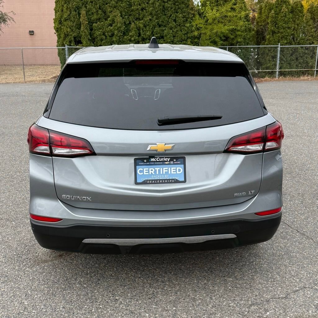 Recent Arrival! 2024 Chevrolet Equinox LT Certified.2024 Chevrolet Equinox LT AWD 6-Speed Automatic Electronic with Overdrive 1.5L DOHC Sterling Gray Metallic Chevrolet Certified Pre-Owned Certified, AWD, 17 Aluminum Wheels, 2 Rear USB Charging-Only Ports, 2 USB Ports & Auxiliary Input Jack, 2-Way Power Driver Lumbar Control Seat Adjuster, 3.87 Final Drive Axle Ratio, 4-Wheel Disc Brakes, 6 Speakers, 6-Speaker Audio System Feature, ABS brakes, Air Conditioning, Alloy wheels, AM/FM radio: SiriusXM, Auto High-beam Headlights, Automatic temperature control, Bluetooth® For Phone, Brake assist, Bumpers: body-color, Compass, Delay-off headlights, Deleted 3 Years of OnStar Remote Access, Driver 8-Way Power Seat Adjuster, Driver door bin, Driver vanity mirror, Dual front impact airbags, Dual front side impact airbags, Electronic Stability Control, Emergency communication system: OnStar and Chevrolet connected services capable, Four wheel independent suspension, Front anti-roll bar, Front Bucket Seats, Front Center Armrest, Front dual zone A/C, Front Passenger 4-Way Manual Seat Adjuster, Front reading lights, Fully automatic headlights, Heated door mirrors, Heated Driver & Front Passenger Seats, Heated front seats, Illuminated entry, Low tire pressure warning, Occupant sensing airbag, Outside temperature display, Overhead airbag, Overhead console, Panic alarm, Passenger door bin, Passenger vanity mirror, Power door mirrors, Power driver seat, Power Liftgate, Power steering, Power windows, Preferred Equipment Group 1LT, Premium audio system: Chevrolet Infotainment 3, Premium Cloth Seat Trim, Radio data system, Radio: Chevrolet Infotainment 3 System w/AM/FM, Rear anti-roll bar, Rear reading lights, Rear seat center armrest, Rear window defroster, Rear window wiper, Remote keyless entry, Security system, SiriusXM, Speed control, Speed-sensing steering, Split folding rear seat, Spoiler, Steering wheel mounted audio controls, Tachometer, Telescoping steering wheel, Tilt steering wheel, Traction control, Trip computer, Variably intermittent wipers, AWD.Chevrolet Certified Pre-Owned Details:* Limited Warranty: 12 Month/12,000 Mile (whichever comes first) from certified purchase date* Powertrain Limited Warranty: 72 Month/100,000 Mile (whichever comes first) from original in-service date* Roadside Assistance* Transferable Warranty* 24 months/24,000 miles (whichever comes first) Certified Pre-Owned Scheduled Maintenance Plan and 3 days/150 miles (whichever comes first) Vehicle Exchange Program. SiriusXM 3-month trial subscription.* Vehicle History* 172 Point Inspection* Warranty Deductible: $0Odometer is 2825 miles below market average! 24/30 City/Highway MPG