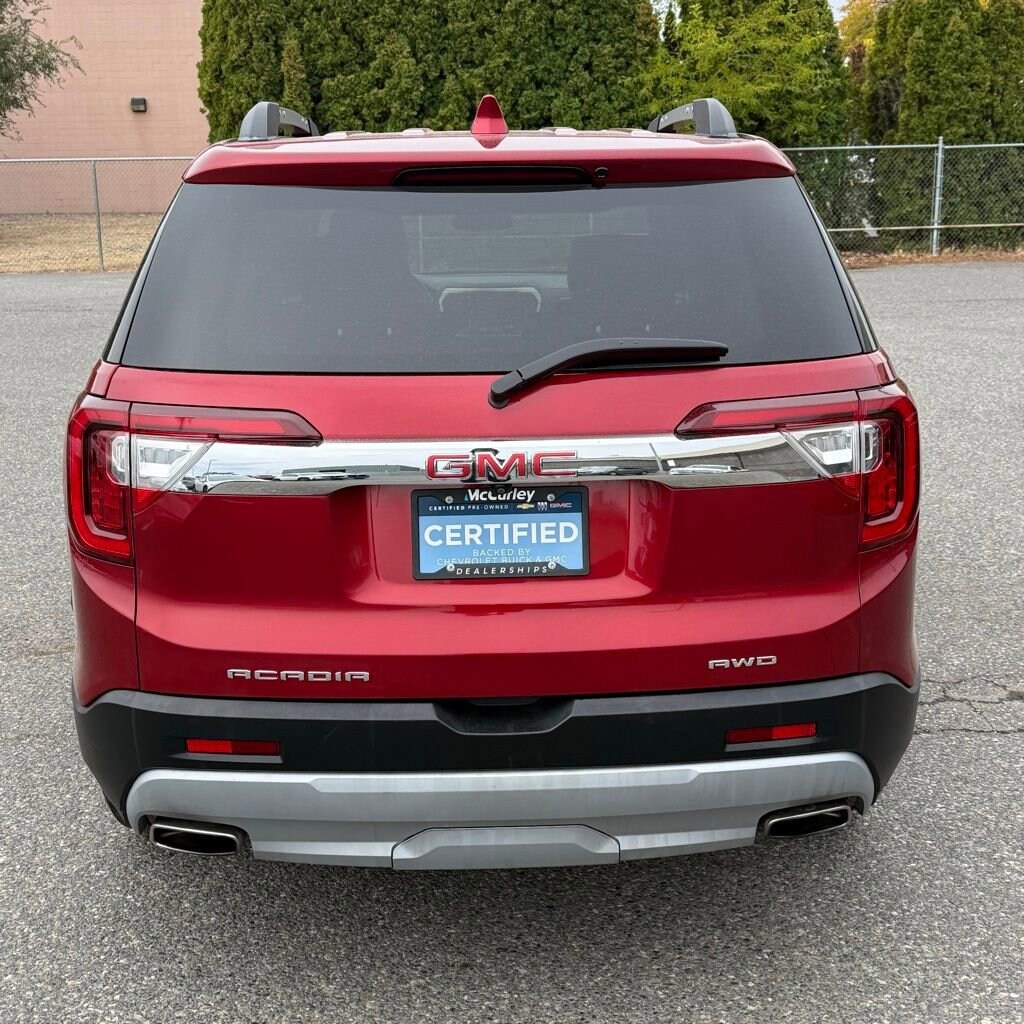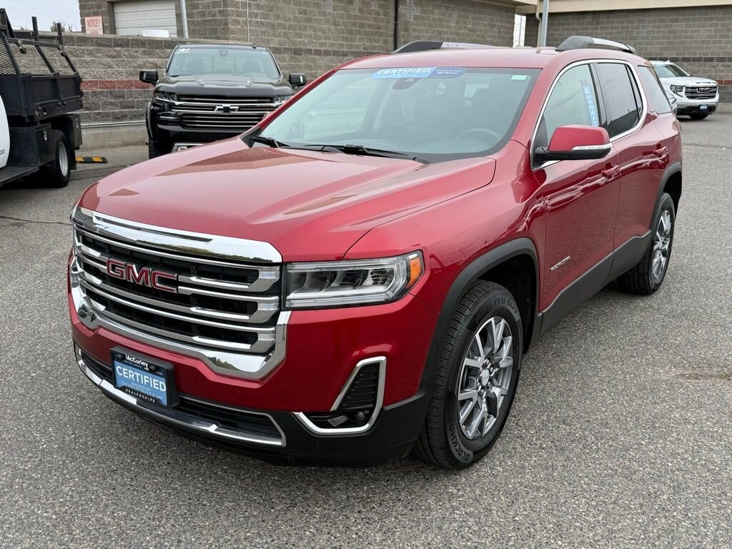 Recent Arrival! 2023 GMC Acadia SLT Certified.2023 GMC Acadia SLT AWD 9-Speed Automatic 2.0L Turbocharged Volcanic Red Tintcoat GMC Certified Pre-Owned Certified, AWD, Black Leather, Preferred Equipment Group 4SA, 18 Aluminum Wheels, 3.47 Final Drive Axle Ratio, 3rd row seats: split-bench, 4-Way Manual Passenger Seat Adjuster, 4-Wheel Disc Brakes, 6-Passenger (2-2-2 Seating Configuration), 8 Speakers, 8-Way Power Driver Seat Adjuster, ABS brakes, Air Conditioning, Alloy wheels, AM/FM radio: SiriusXM with 360L, Apple CarPlay/Android Auto, Auto High-beam Headlights, Auto-dimming Rear-View mirror, Automatic temperature control, Bose Premium 8-Speaker Audio System Feature, Brake assist, Bumpers: body-color, Compass, Delay-off headlights, Deleted 3 Years of OnStar & Connected Services Plan, Driver door bin, Driver vanity mirror, Dual front impact airbags, Dual front side impact airbags, Electronic Stability Control, Emergency communication system: OnStar and GMC connected services capable, Four wheel independent suspension, Front anti-roll bar, Front Bucket Seats, Front Center Armrest, Front dual zone A/C, Front fog lights, Front License Plate Bracket, Front reading lights, Fully automatic headlights, Garage door transmitter, Heated door mirrors, Heated Driver & Front Passenger Seats, Heated front seats, Illuminated entry, Knee airbag, Low tire pressure warning, Navigation System, Not Equipped w/Front & Rear Park Assist (060), Occupant sensing airbag, Outside temperature display, Overhead airbag, Overhead console, Panic alarm, Passenger door bin, Passenger vanity mirror, Perforated Leather-Appointed Seat Trim, Power door mirrors, Power Driver Lumbar Control Seat Adjuster, Power driver seat, Power Liftgate, Power steering, Power windows, Radio data system, Radio: AM/FM 8 Diagonal Multi-Touch Navigation, Rear air conditioning, Rear anti-roll bar, Rear reading lights, Rear window defroster, Rear window wiper, Remote keyless entry, Roof rack: rails only, Security system, SiriusXM w/360L, Speed control, Speed-sensing steering, Spoiler, Steering wheel mounted audio controls, Tachometer, Telescoping steering wheel, Tilt steering wheel, Traction control, Trip computer, Turn signal indicator mirrors, Variably intermittent wipers, Voltmeter, Wireless Apple CarPlay/Wireless Android Auto, AWD, Black Leather, Preferred Equipment Group 4SA.GMC Certified Pre-Owned Details:* Transferable Warranty* Vehicle History* 24 months/24,000 miles (whichever comes first) Certified Pre-Owned Scheduled Maintenance Plan and 3 days/150 miles (whichever comes first) Vehicle Exchange Program. SiriusXM 3-month trial subscription* Roadside Assistance* Warranty Deductible: $0* Powertrain Limited Warranty: 72 Month/100,000 Mile (whichever comes first) from original in-service date* Limited Warranty: 12 Month/12,000 Mile (whichever comes first) from certified purchase date* 172 Point Inspection22/27 City/Highway MPG