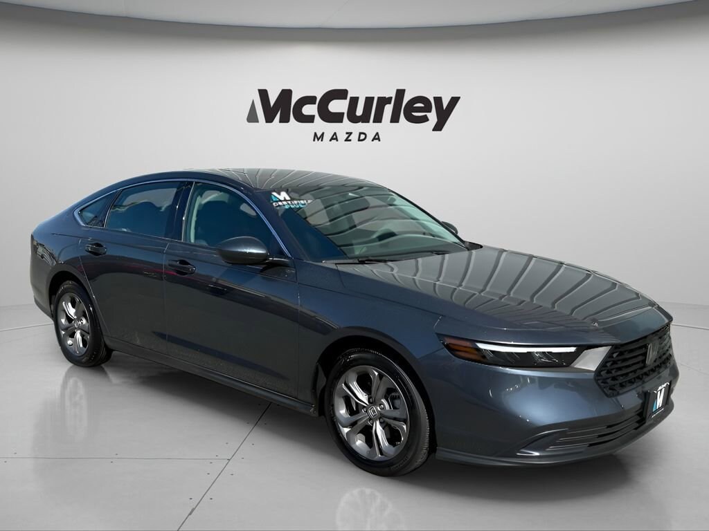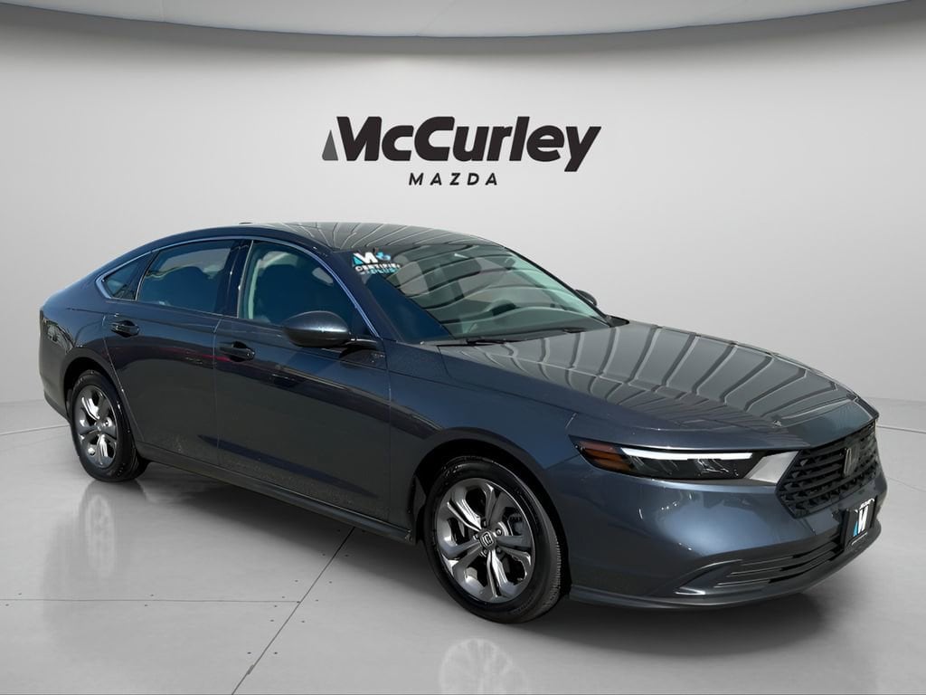 2024 Honda Accord EX FWD CVT 1.5T I4 DOHC 16V Turbocharged VTEC Meteorite McCurley Certified + Certified, Black Cloth, 4-Wheel Disc Brakes, 8 Speakers, ABS brakes, Adaptive Cruise Control: Adaptive Cruise Control (ACC) with Low-Speed Follow, Air Conditioning, Alloy wheels, AM/FM radio, Apple CarPlay/Android Auto, Auto High-beam Headlights, Auto-dimming Rear-View mirror, Automatic temperature control, Blind Spot Information (BSI) System warning, Brake assist, Bumpers: body-color, Compass, Delay-off headlights, Driver door bin, Driver vanity mirror, Dual front impact airbags, Dual front side impact airbags, Electronic Stability Control, Emergency communication system: HondaLink Assist, Exterior Parking Camera Rear, Fabric Seat Trim, Four wheel independent suspension, Front anti-roll bar, Front Bucket Seats, Front Center Armrest, Front dual zone A/C, Front reading lights, Fully automatic headlights, Heated Front Bucket Seats, Heated front seats, Illuminated entry, Knee airbag, Lane departure: Lane Keeping Assist System (LKAS) active, Low tire pressure warning, Occupant sensing airbag, Outside temperature display, Overhead airbag, Overhead console, Panic alarm, Passenger door bin, Passenger vanity mirror, Power door mirrors, Power driver seat, Power moonroof, Power steering, Power windows, Radio data system, Radio: 180-Watt AM/FM Audio System, Rear anti-roll bar, Rear reading lights, Rear seat center armrest, Rear side impact airbag, Rear window defroster, Remote keyless entry, Security system, Speed control, Speed-sensing steering, Speed-Sensitive Wipers, Split folding rear seat, Steering wheel mounted audio controls, Tachometer, Telescoping steering wheel, Tilt steering wheel, Traction control, Trip computer, Variably intermittent wipers, Wheels: 17 x 7.5 Pewter Gray, Black Cloth.