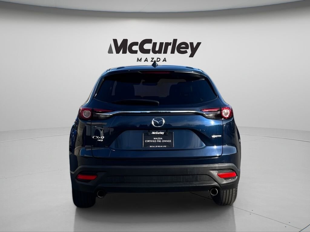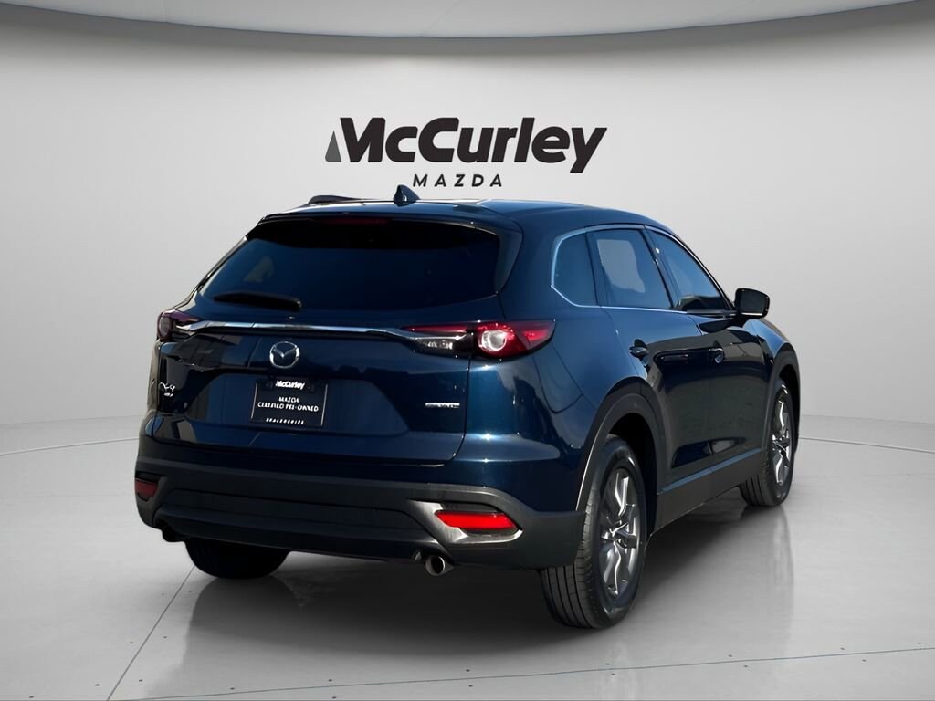 2023 Mazda CX-9 Touring AWD 6-Speed Automatic 2.5L 4-Cylinder Deep Crystal Blue Mica Mazda Certified Pre-Owned Certified, AWD, 3rd row seats: bench, 4-Wheel Disc Brakes, 4.411 Axle Ratio, 6 Speakers, ABS brakes, Air Conditioning, Alloy wheels, AM/FM radio, AppLink/Apple CarPlay and Android Auto, Auto High-beam Headlights, Auto-dimming Rear-View mirror, Automatic temperature control, Brake assist, Bumpers: body-color, Compass, Delay-off headlights, Driver door bin, Driver vanity mirror, Dual front impact airbags, Dual front side impact airbags, E911 Automatic Emergency Notification, Electronic Stability Control, Emergency communication system: MAZDA CONNECT, Exterior Parking Camera Rear, Four wheel independent suspension, Front & Rear Bumper Trim, Front anti-roll bar, Front Bucket Seats, Front Center Armrest, Front dual zone A/C, Front fog lights, Front reading lights, Fully automatic headlights, Garage door transmitter: HomeLink, Heated door mirrors, Heated Front Bucket Seats, Heated front seats, Illuminated entry, Infotainment System Voice Command, Leather Seat Trim, Leather Shift Knob, Leather steering wheel, Low tire pressure warning, Mazda Connected Services, Occupant sensing airbag, Outside temperature display, Overhead airbag, Overhead console, Pandora Internet Radio Integration, Panic alarm, Passenger door bin, Passenger vanity mirror, Power door mirrors, Power driver seat, Power Liftgate, Power moonroof, Power passenger seat, Power steering, Power windows, Radio Broadcast Data System Program Information, Radio data system, Radio: AM/FM Sound System, Rain sensing wipers, Rear air conditioning, Rear anti-roll bar, Rear reading lights, Rear window defroster, Rear window wiper, Remote keyless entry, SMS Text Msg Audio Delivery & Reply, Speed control, Speed-sensing steering, Split folding rear seat, Spoiler, Steering wheel mounted audio controls, Tachometer, Telescoping steering wheel, Tilt steering wheel, Traction control, Trip computer, Turn signal indicator mirrors, Variably intermittent wipers, Wheel Locks, Wheels: 18 x 8J Aluminum Alloy, AWD.
